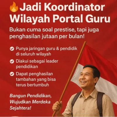 Apakah Anda seorang guru atau individu yang peduli dengan pendidikan dan ingin memiliki penghasilan tambahan sekaligus membantu para guru di era digital? PORTAL GURU membuka kesempatan menjadi Koordinator Wilayah di Kecamatan Pasar Minggu, Jakarta Selatan. Tugas utama Anda adalah mengurus pendaftaran guru-guru privat yang bergabung dengan komunitas serta memberikan training digital agar mereka bisa lebih mudah memasarkan jasa privat secara online.